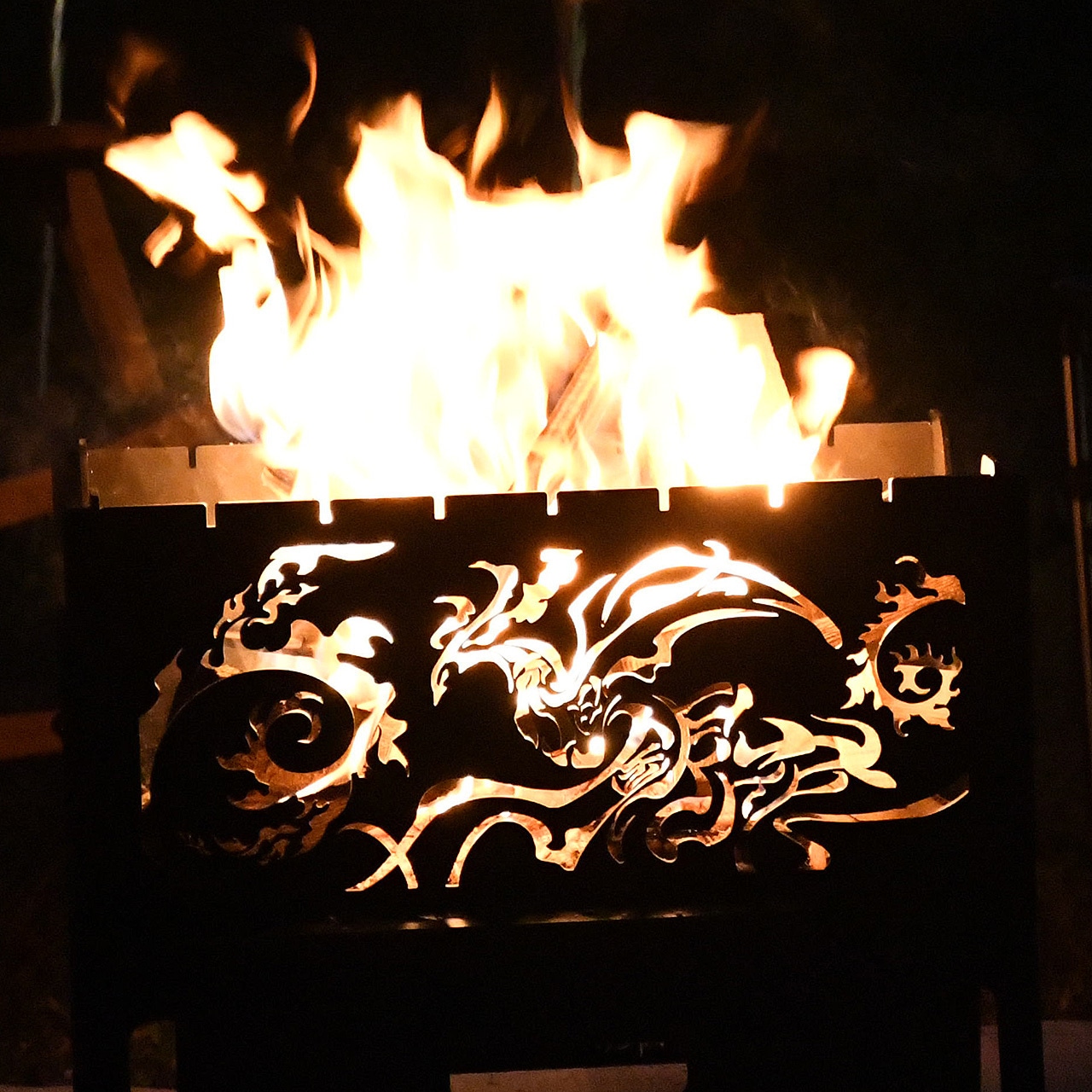 キャンプ・アウトドアでの使用はもちろん、照明を入れて室内外のインテリアとしても使用可能。1台で多様に楽しめる焚火台!!