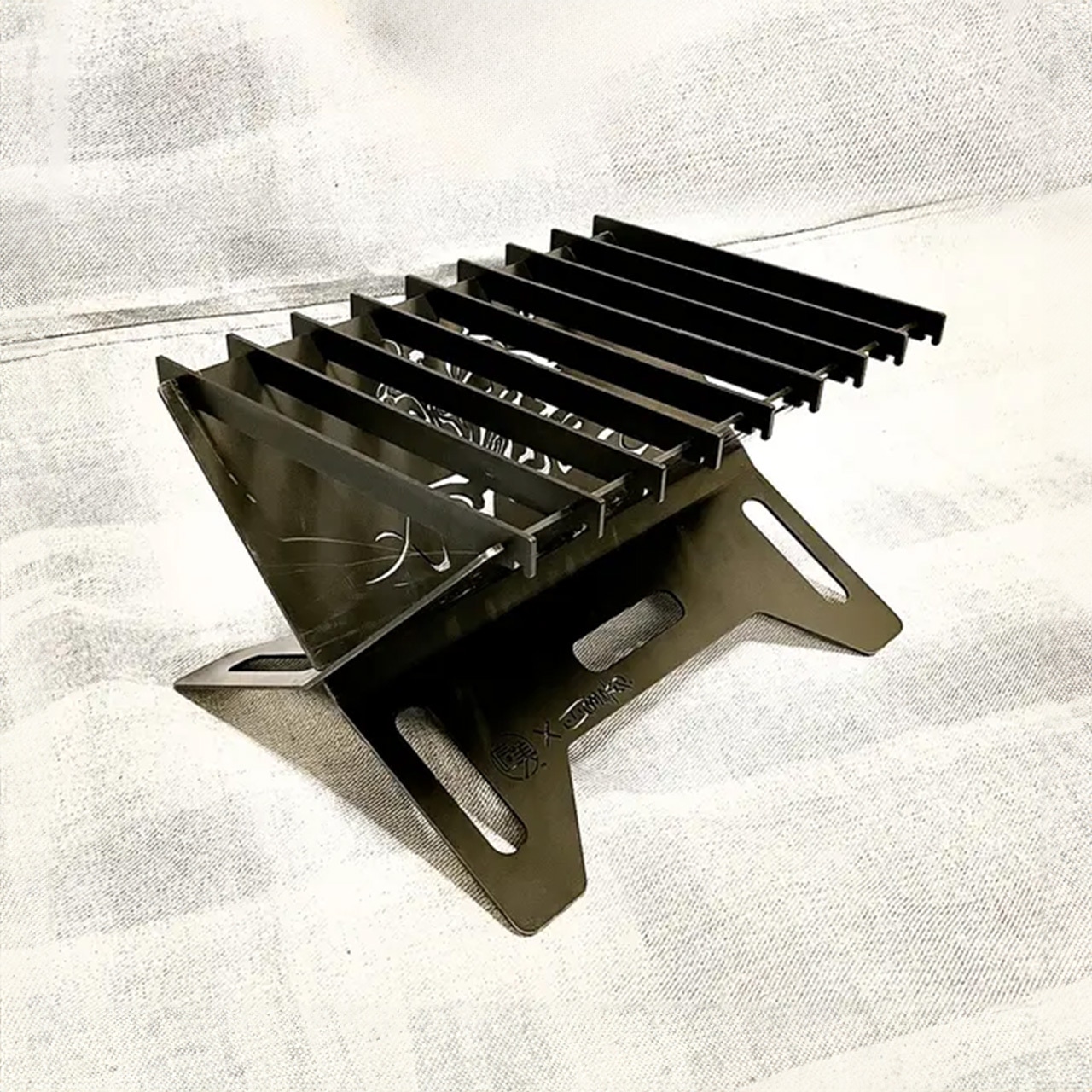 漆黒の焚火台に炎で描かれる日本の美『葦手絵』と『匠美の技』の競演!!2022年7月、JAPAN EXPOパリに出展されたアーティスト・葦手絵師TOMOKO.とのコラボレーション商品。
