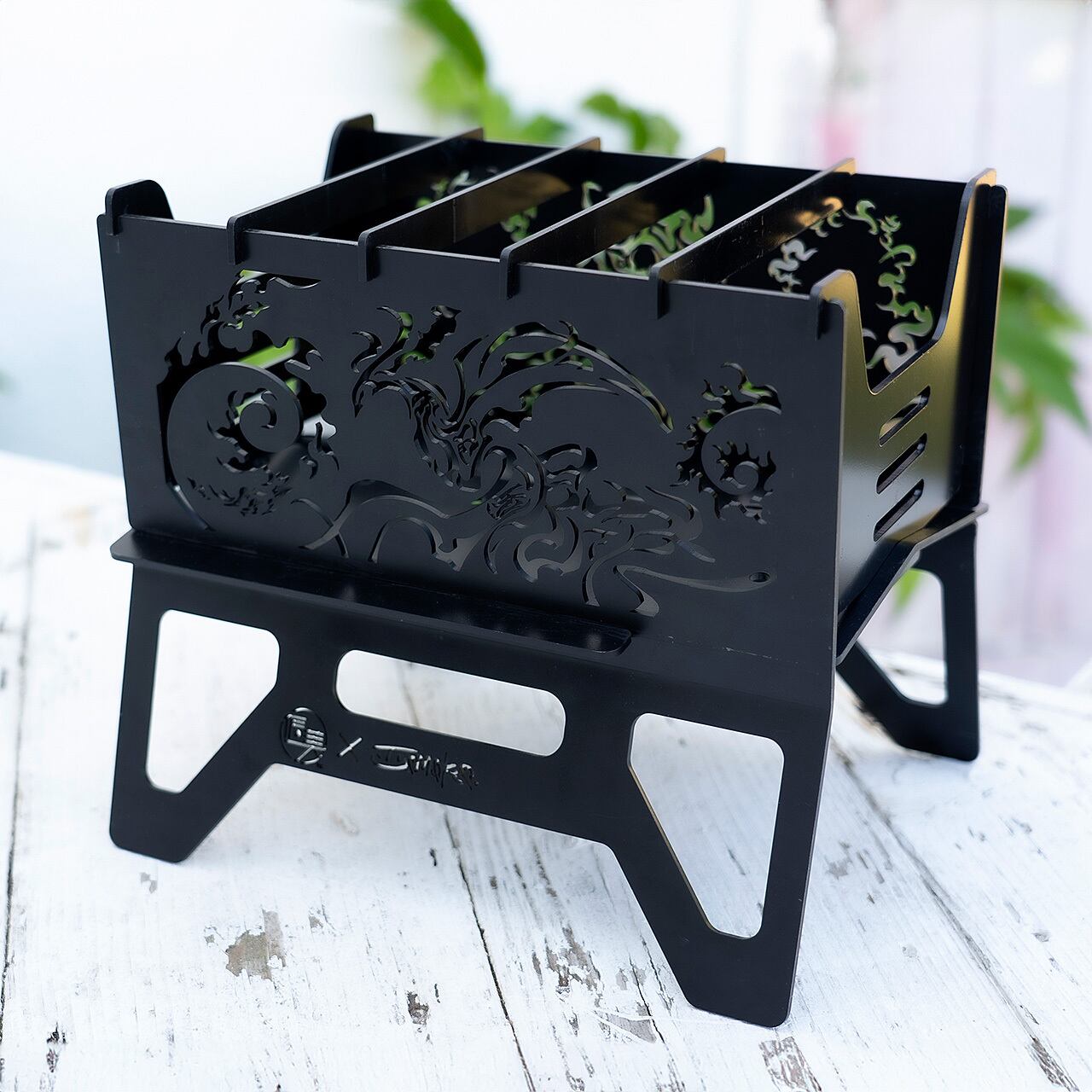 漆黒の焚火台に炎で描かれる日本の美『葦手絵』と『匠美の技』の競演!!2022年7月、JAPAN EXPOパリに出展されたアーティスト・葦手絵師TOMOKO.とのコラボレーション商品。