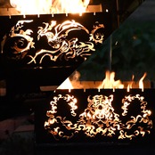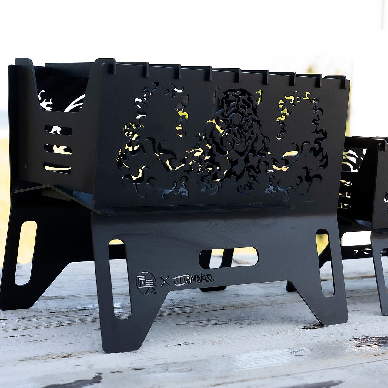 漆黒の焚火台に炎で描かれる日本の美『葦手絵』と『匠美の技』の競演!!2022年7月、JAPAN EXPOパリに出展されたアーティスト・葦手絵師TOMOKO.とのコラボレーション商品。