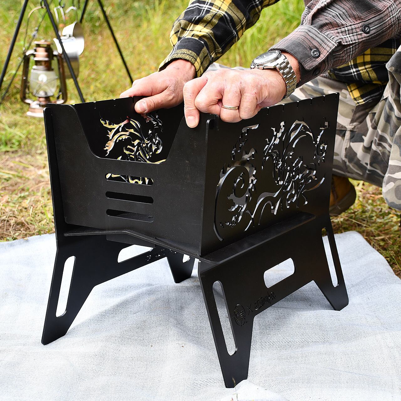 専用バッグ付きなので収納・持ち運びも便利!!キャンプ・アウトドアでの使用はもちろん、照明を入れて室内外のインテリアとしても使用可能。1台で多様に楽しめる焚火台!!